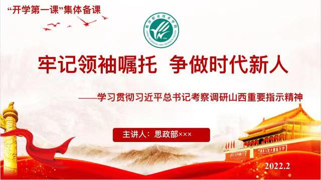2022年2月21日,我院107個班級同時開展了“學習貫徹習近平總書記考察調(diào)研山西重要指示精神”開學第一課專題教育。學院黨委書記傅遵師,副院長劉鳳鳴、王麗明、安建軍,教務處處長張存祥,辦公室主任宋世清,組織人事處處長侯靜濤等領導帶領思政部、教務處相關工作人員組成七個督導組深入班級聽課督導,各系部黨總支書記、主任一同檢查督導、聽課評課。