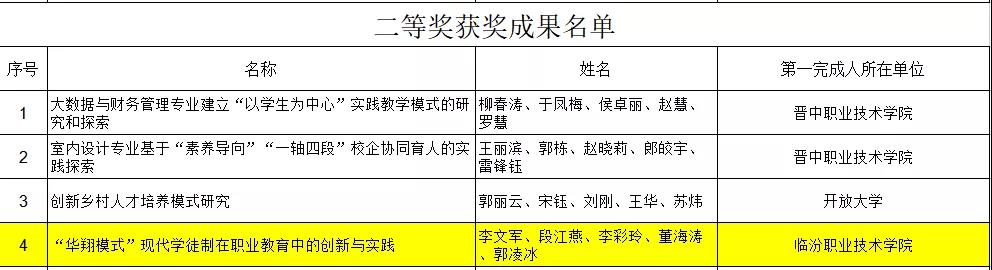 山西省職業(yè)教育教學(xué)成果獎每兩年評選一次,本次我院申報推薦的兩項教學(xué)成果入圍獲獎,是我院不斷提高教學(xué)水平、人才培養(yǎng)質(zhì)量和深化教育教學(xué)改革的靚麗展示,是助力學(xué)院“雙高”建設(shè)的重要標(biāo)志性成果,是我院高質(zhì)量發(fā)展的新契機!
