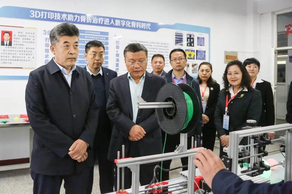 馬駿一行參觀了我院護(hù)理實(shí)訓(xùn)基地、機(jī)電系汽修車間、秦偉三維工作室、工業(yè)機(jī)器人實(shí)訓(xùn)室等實(shí)訓(xùn)場地。馬駿充分肯定了我院產(chǎn)教融合、校企合作工作,并就進(jìn)一步推進(jìn)混合所有制產(chǎn)業(yè)學(xué)院建設(shè)提出了指導(dǎo)意見。
