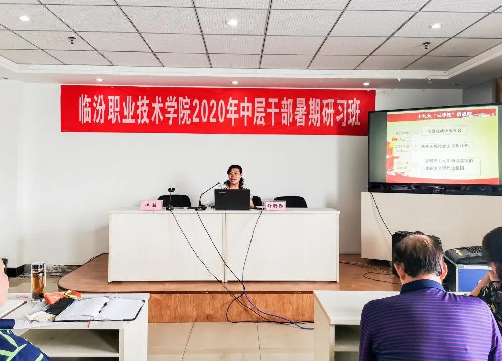 舉辦這次中層干部暑期研習班,是學院黨委深入貫徹學習習近平總書記視察山西重要講話精神、黨的十九屆四中全會精神和省委十一屆十次全會精神作出的重要部署;是推動全院上下深入學習、深刻領(lǐng)會、深度運用習近平總書記重要講話精神的重要舉措;也是落實省委省政府轉(zhuǎn)型發(fā)展各項決策部署,推進學院創(chuàng)新發(fā)展,加快雙高建設(shè)的現(xiàn)實要求。她要求,全院干部要持續(xù)深化學習,在凝聚共識上精準發(fā)力;要堅持學以致用,在推動轉(zhuǎn)化上落地見效;要提高治理能力,在自身建設(shè)上體現(xiàn)擔當;要找準職責定位,在服務(wù)轉(zhuǎn)型上突出優(yōu)勢。