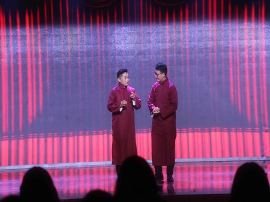 相聲《滿腹經(jīng)綸》精湛嫻熟的演技,夸張大膽的動作,令在場師生捧腹大笑。