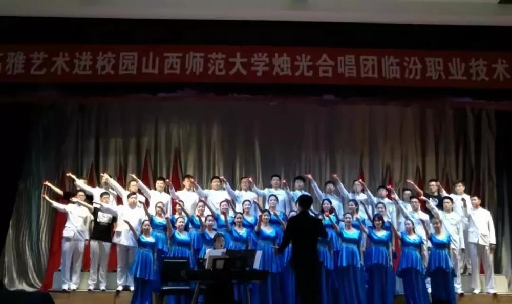 為了將高雅藝術(shù)融入校園文化建設(shè),豐富校園文化生活,達(dá)到藝術(shù)教育“潤(rùn)物無(wú)聲、育人無(wú)形”的效果,引導(dǎo)大學(xué)生弘揚(yáng)優(yōu)秀民族文化,提高藝術(shù)和文化素養(yǎng),促進(jìn)大學(xué)生全面發(fā)展。山西師范大學(xué)燭光合唱團(tuán)于6月12日下午4點(diǎn)在我院圖書(shū)樓三層舉行了一場(chǎng)精彩演出,將高雅藝術(shù)帶進(jìn)了校園。學(xué)院副院長(zhǎng)梁培福出席并致歡迎詞,各系部處室的主要領(lǐng)導(dǎo)及學(xué)生代表500余人一同觀看了此次演出。