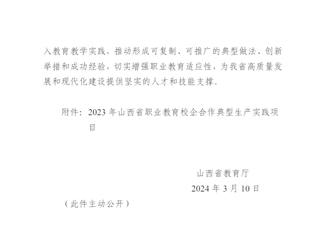 近日,在省教育廳組織的2023年度山西省職業(yè)教育校企合作典型生產(chǎn)實踐項目評選活動中,我院申報的“基于‘華翔產(chǎn)業(yè)學(xué)院’校企合作典型生產(chǎn)實踐項目”成功入選,并推送至教育部。