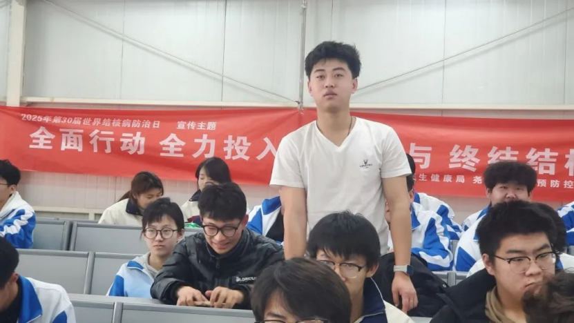 堯都區(qū)疾病預(yù)防控制中心結(jié)防科科長郭曉峰,針對結(jié)核病防治知識進(jìn)行了現(xiàn)場互動問答,內(nèi)容涵蓋結(jié)核病的病因、癥狀、預(yù)防及治療知識。通過互動形式,激發(fā)了學(xué)生學(xué)習(xí)健康知識的興趣。