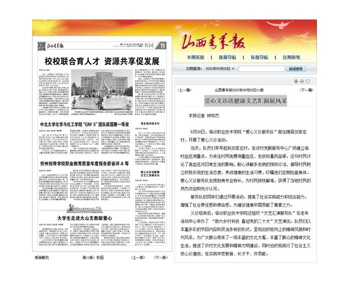 2022年9月2日,《山西青年報》報道我院學(xué)生暑期“三下鄉(xiāng)”活動《愛心義診送健康 文藝匯演展風(fēng)采》