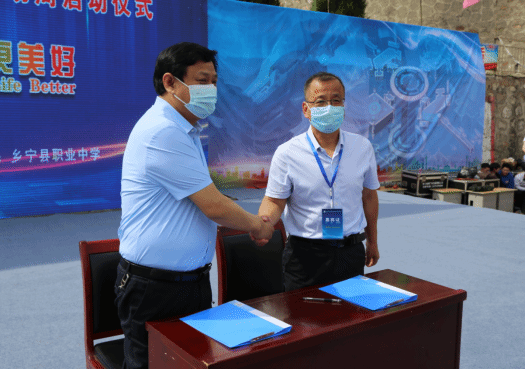 啟動儀式上,院長段江燕與鄉(xiāng)寧縣人民政府副縣長盧冬、鄉(xiāng)寧縣教科局黨委書記、局長閻江濤共同按下啟動球,圓滿啟動此次活動。副院長王麗明與鄉(xiāng)寧縣職業(yè)中學(xué)校長尉六龍簽訂校校合作協(xié)議。