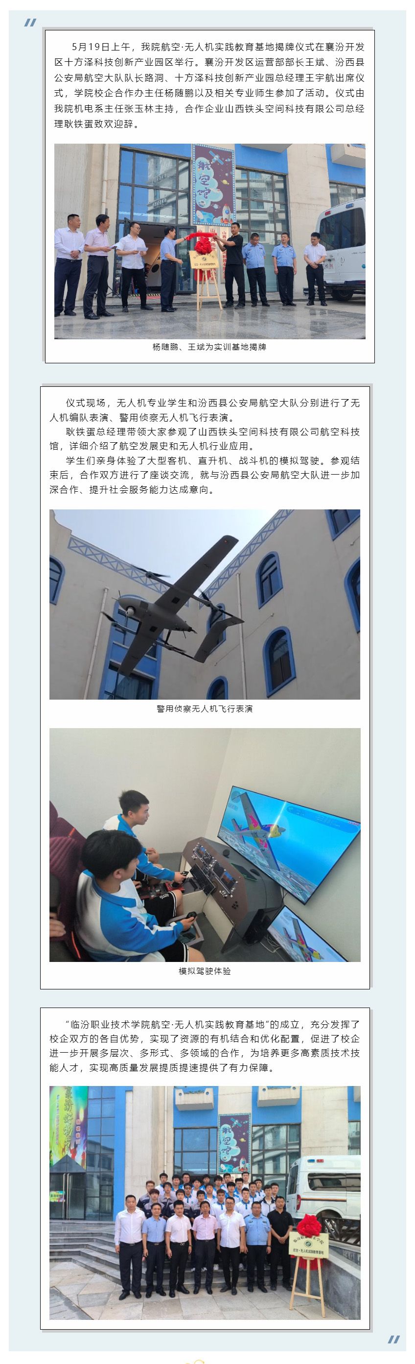 職教活動周 | 我院與山西鐵頭空間科技有限公司舉行航空·無人機(jī)實(shí)踐教育基地掛牌儀式