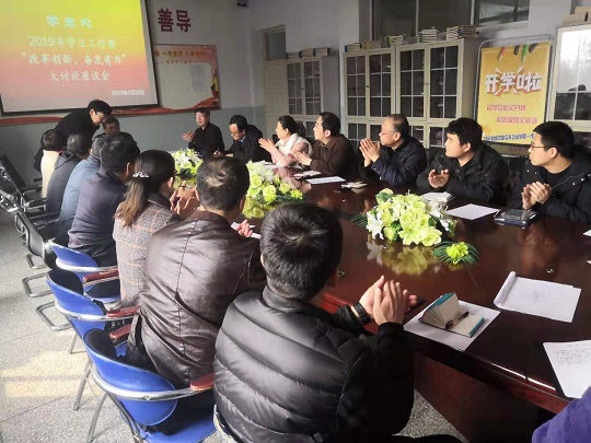 三、蘇處長(zhǎng)宣布學(xué)生處2019年工作計(jì)劃,進(jìn)行討論。他強(qiáng)調(diào),今后學(xué)生管理工作權(quán)限下放,各系擬定方案自己管理學(xué)生,學(xué)生處宏觀指導(dǎo),協(xié)調(diào)服務(wù)。學(xué)生處要給輔導(dǎo)員(班主任)做后盾,支持他們的工作,帶好輔導(dǎo)員隊(duì)伍,改革創(chuàng)新學(xué)生工作,共同努力把工作做好,為學(xué)院安全穩(wěn)定做貢獻(xiàn)。