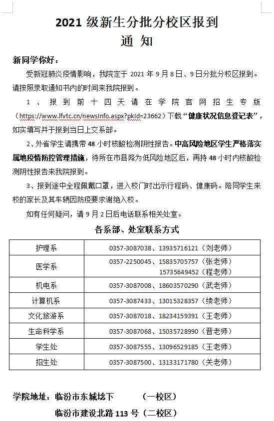 2021級(jí)新生分批分校區(qū)報(bào)到通知