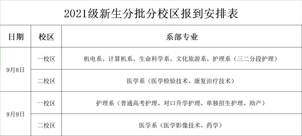 2021級(jí)新生分批分校區(qū)報(bào)到安排表