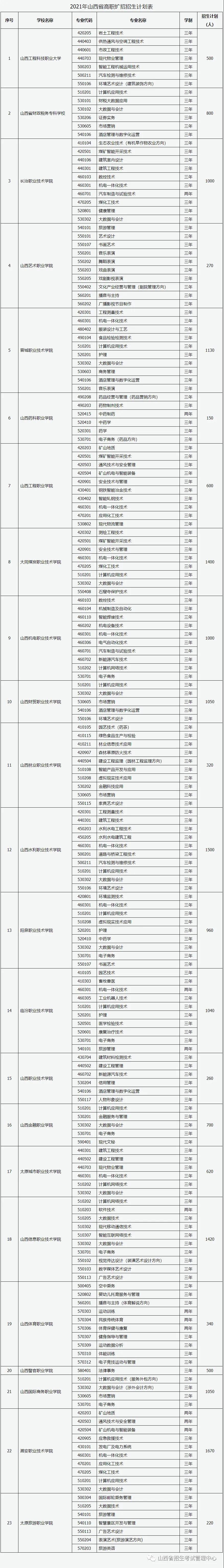 參加高職擴(kuò)招的院校經(jīng)省教育廳備案后開展擴(kuò)招工作,高職擴(kuò)招院校及專業(yè)詳見山西招生考試網(wǎng)。