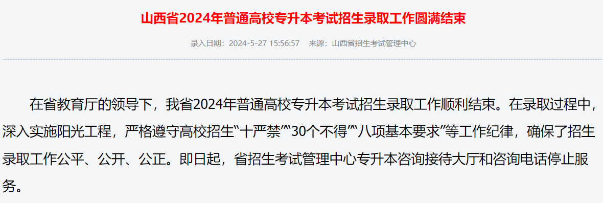 山西省2024年普通高校專升本考試招生錄取工作圓滿結(jié)束