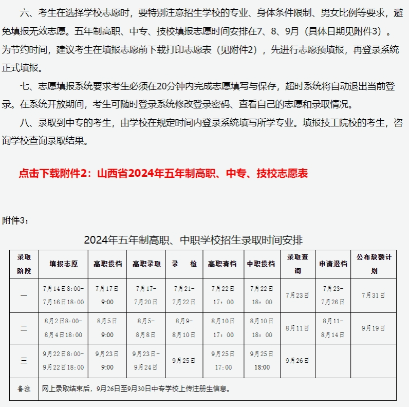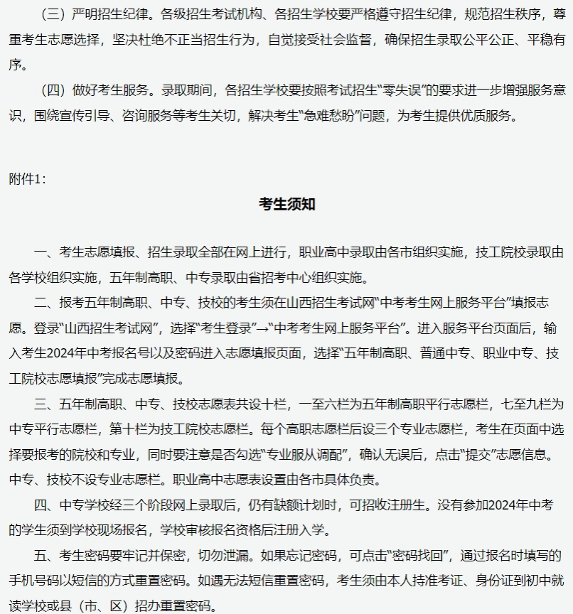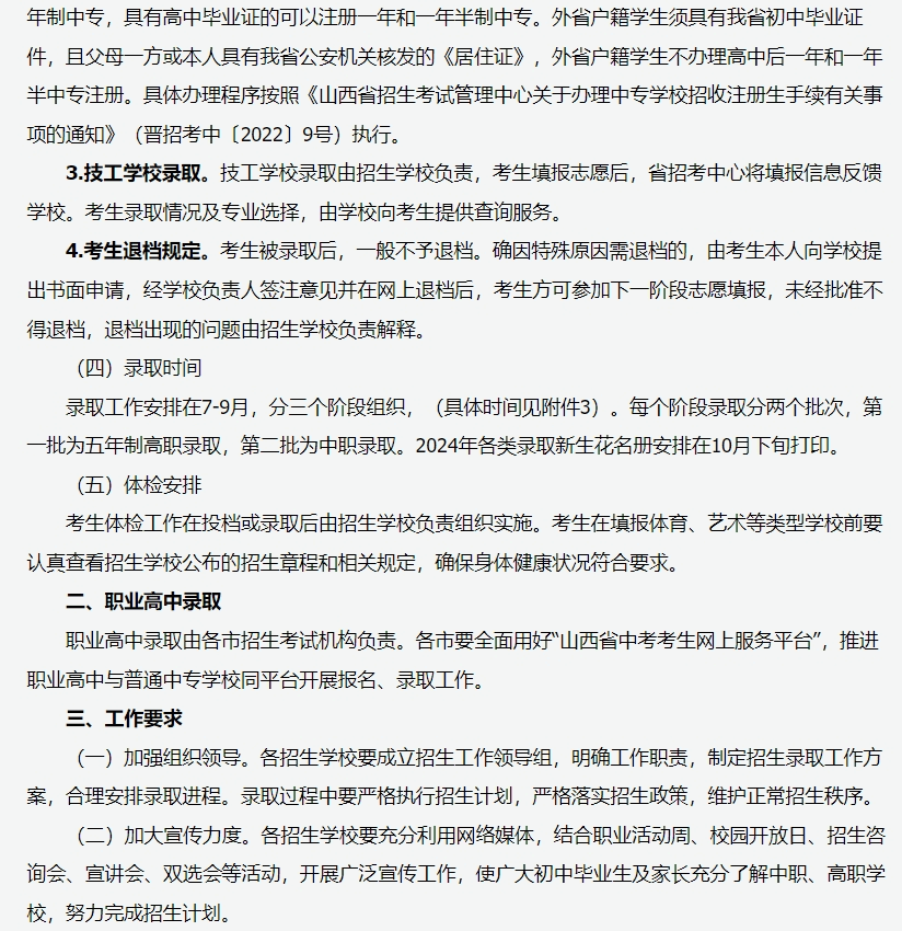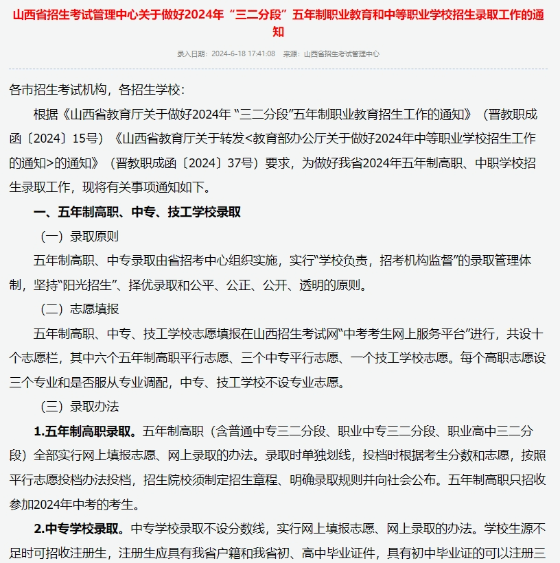 山西省招生考試管理中心關(guān)于做好2024年“三二分段”五年制職業(yè)教育和中等職業(yè)學(xué)校招生錄取工作的通知