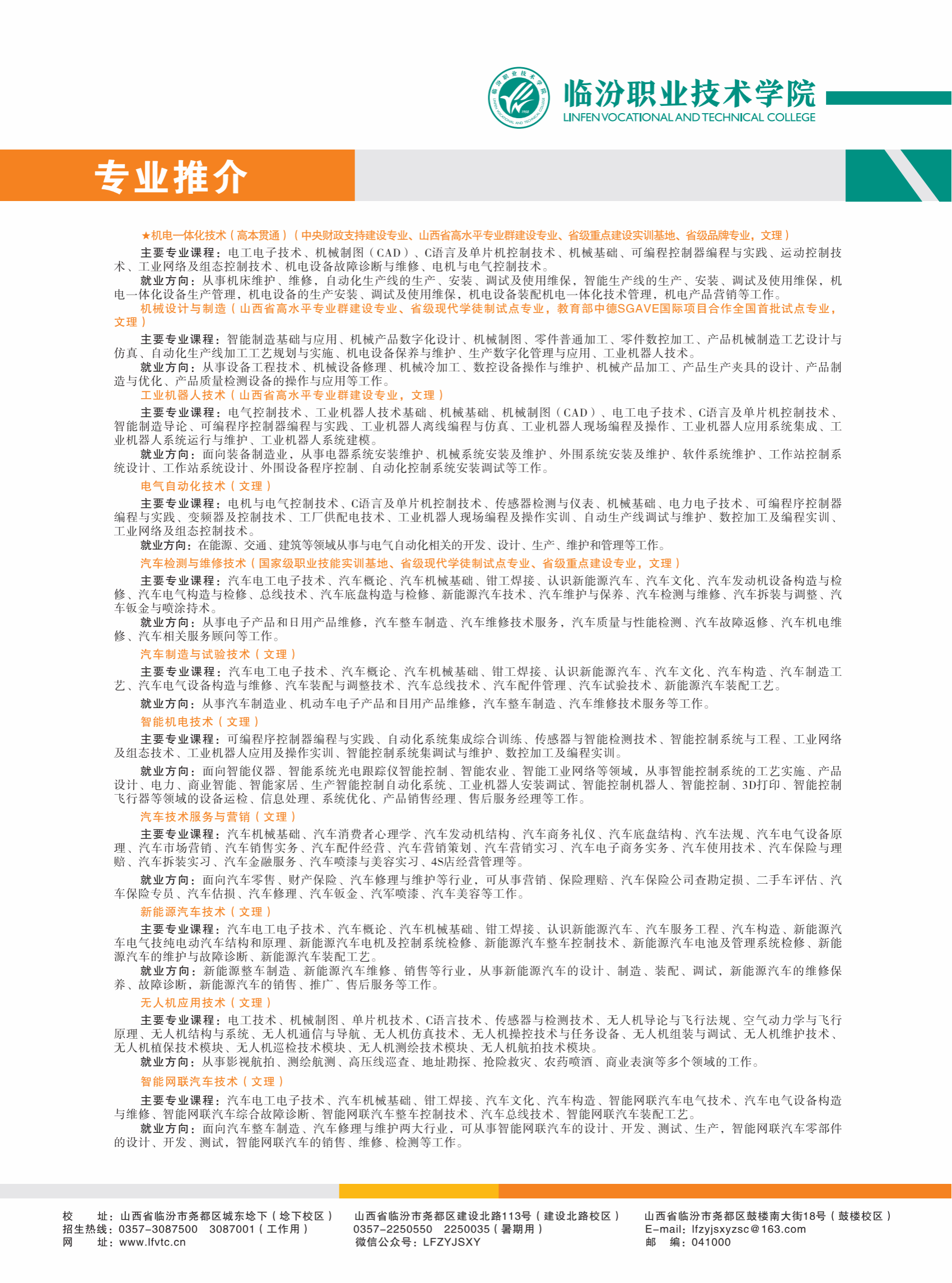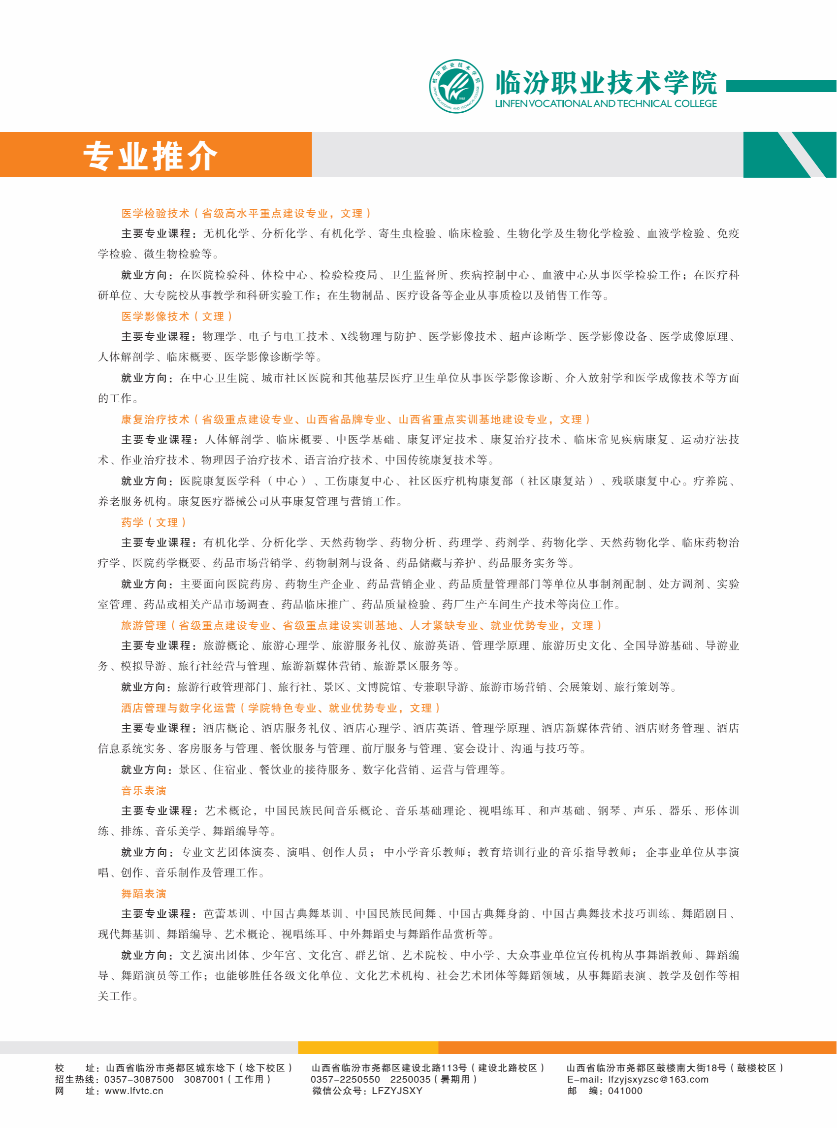 臨汾職業(yè)技術學院2024年普通高考招生簡章