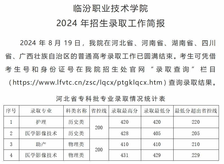 臨汾職業(yè)技術(shù)學(xué)院2024年招生錄取工作簡(jiǎn)報(bào)(河北省、河南省、湖南省、四川省、廣西壯族自治區(qū))
