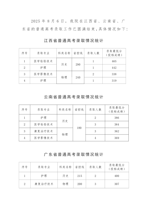 臨汾職業(yè)技術學院2025年普通高考招生錄取工作簡報(江西省、云南省、廣東省)