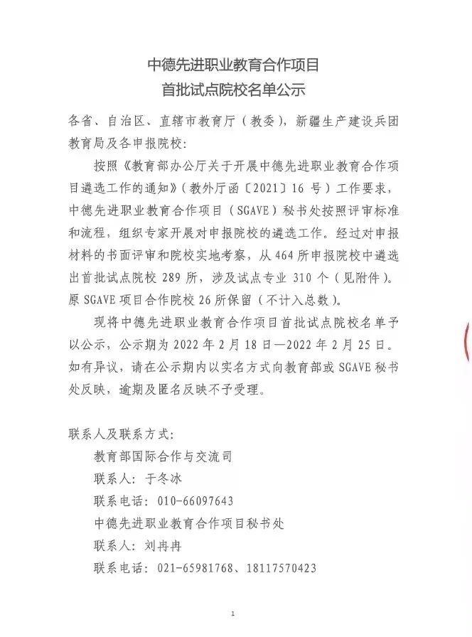 近日,中德先進職業(yè)教育合作項目首批試點院校公示名單公布。我院成功入選試點院校。我院成功入選首批試點院校,機械設(shè)計與制造專業(yè)入選智能制造領(lǐng)域的試點專業(yè)。