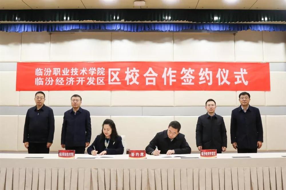 我院院長(zhǎng)段江燕與臨汾經(jīng)濟(jì)開發(fā)區(qū)黨工委書記、管委會(huì)主任元福明簽署區(qū)校合作共建“雙培雙創(chuàng)”工作基地協(xié)議。