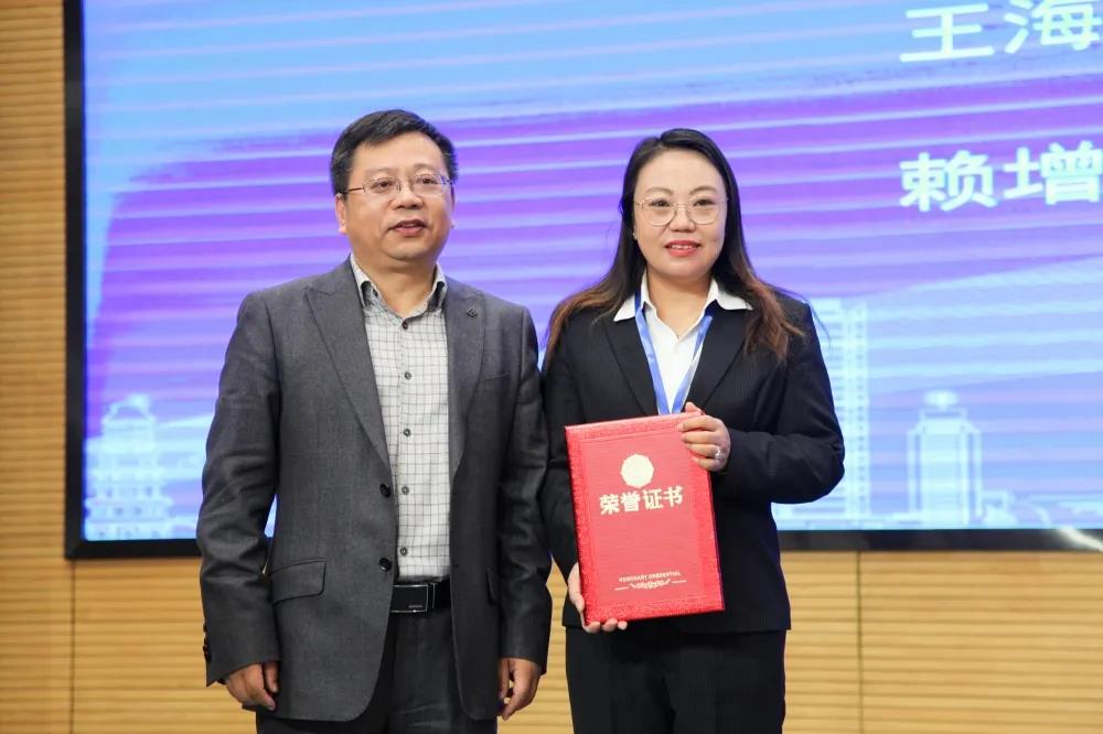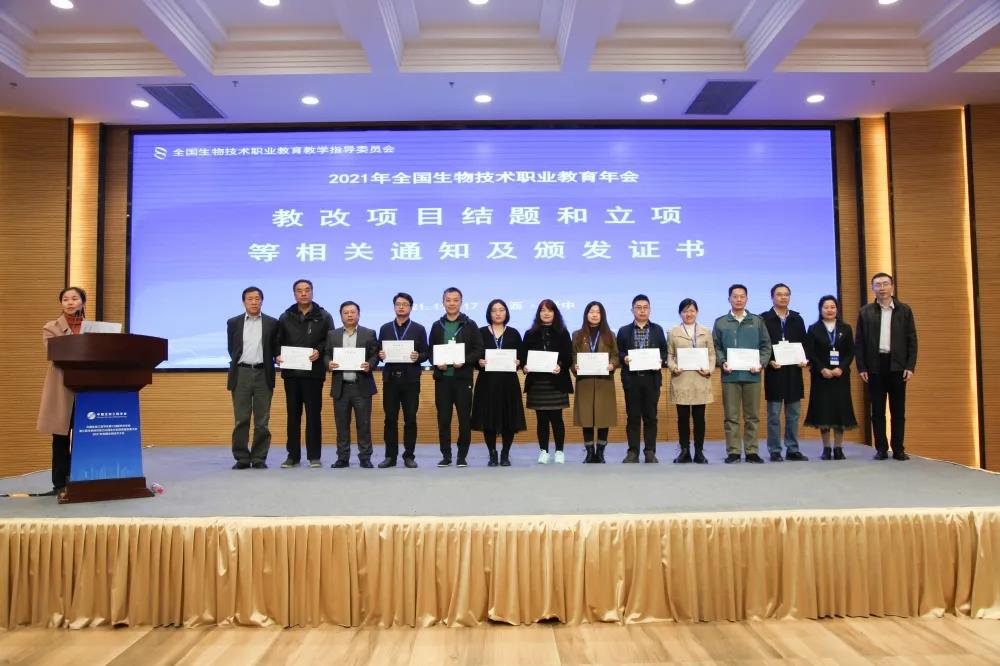 我院科研中心青年教師仇大成獲得論文一等獎、科研中心主任鄭榮華獲得論文二等獎。全國生物技術(shù)職業(yè)教育教學(xué)指導(dǎo)委員會朱楨主任、中國科學(xué)院院士楊煥明、我院長段江燕等領(lǐng)導(dǎo)為優(yōu)秀論文及教改項目作者頒發(fā)證書。