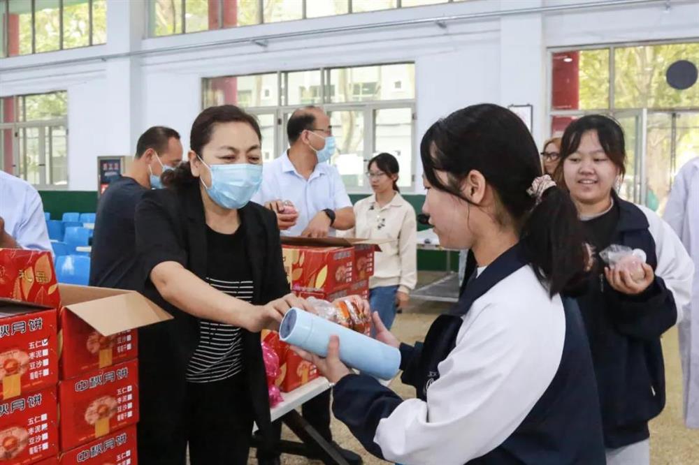 ▲院領(lǐng)導(dǎo)為學(xué)生發(fā)放月餅