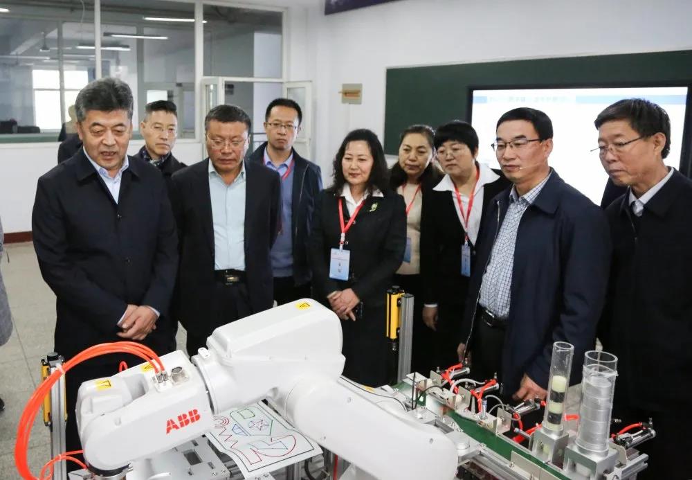 馬駿一行參觀了我院護(hù)理實(shí)訓(xùn)基地、機(jī)電系汽修車間、秦偉三維工作室、工業(yè)機(jī)器人實(shí)訓(xùn)室等實(shí)訓(xùn)場地。馬駿充分肯定了我院產(chǎn)教融合、校企合作工作,并就進(jìn)一步推進(jìn)混合所有制產(chǎn)業(yè)學(xué)院建設(shè)提出了指導(dǎo)意見。