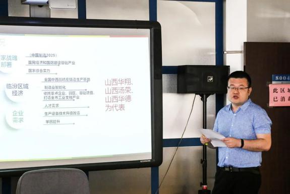 座談會上,智能制造研發(fā)中心項目負責人郭浩澤從學(xué)院基本情況、產(chǎn)業(yè)發(fā)展情況、項目建設(shè)規(guī)劃、項目預(yù)期效益等方面進行了匯報;康復(fù)養(yǎng)老實訓(xùn)基地項目負責人宋威詳細講解了實訓(xùn)基地建設(shè)的必要性、社會效益、可行性以及人員組成等情況。
