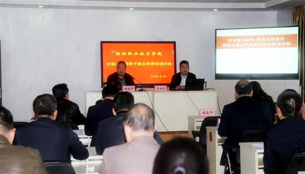 2019年3月26日下午,我院召開了“強化政治擔當,落實主體責任”專題培訓會,學院黨委書記傅遵師主持會議并作講話,市紀委監(jiān)委信訪室李海榮作了專題輔導,全體中層以上領導干部參加了培訓。為進一步強化中層以上干部這個“關鍵少數”的政治擔當,進一步強化落實主體責任的意識,進一步壓緊壓實管黨治黨的責任,凝心聚力、樹立正氣、真抓實干,全力做好學院各項工作打下了堅實的基礎。