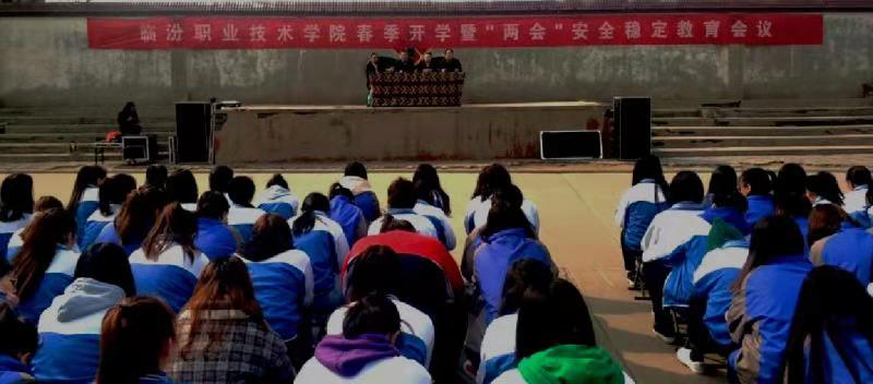 為貫徹落實(shí)山西省教育廳《關(guān)于切實(shí)做好2019年春季開學(xué)及全國“兩會(huì)”期間學(xué)校安全穩(wěn)定工作的通知》(晉教安穩(wěn)[2019]2號(hào)文件)要求,進(jìn)一步加強(qiáng)安全教育,確保春季開學(xué)順利,營造全國“兩會(huì)”安全穩(wěn)定的良好氛圍。按照學(xué)院安全工作專項(xiàng)會(huì)議要求部署,2019年3月5日下午,臨汾職業(yè)學(xué)院分兩個(gè)校區(qū)同時(shí)召開了春季開學(xué)暨“兩會(huì)”安全穩(wěn)定教育會(huì)議。學(xué)院副院長李海平、教務(wù)處處長張存祥、學(xué)生處處長蘇保衛(wèi)、醫(yī)學(xué)系書記白方、護(hù)理系書記卓剛和學(xué)生管理干部以及全體班主任參加了本次活動(dòng)。活動(dòng)由張存祥處長主持。