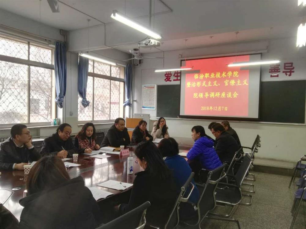 2018年12月6日和10日,根據(jù)學(xué)院《關(guān)于集中整治形式主義、官僚主義的實施方案》精神,學(xué)院領(lǐng)導(dǎo)班子成員分別深入一線就“集中整治形式主義、官僚主義”工作開展情況進(jìn)行調(diào)研。