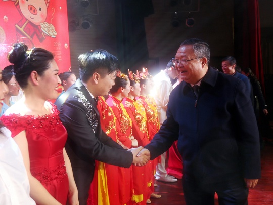 學院黨委書記傅遵師向全體師生作了熱情洋溢的新年致辭,回顧了學院師生共同奮進、碩果累累的2018年,并展望了美好的未來。他說,九層之臺,起于累土。2019年,是創(chuàng)建優(yōu)質特色靚麗一流的高職院校的開局之年,也是我院全面貫徹落實十九大精神、全國高校思想政治工作會議精神和全國教育大會精神的關鍵之年,也是我院新一屆領導班子帶領全院師生凝心聚力、開拓創(chuàng)新、努力奮斗的一年。在新的一年里,我們要緊密團結在以習近平同志為核心的黨中央周圍,高舉中國特色社會主義偉大旗幟,凝心聚力,攻堅克難,搶抓機遇,奮力拼搏,在各自的崗位上勤奮學習,努力工作,不馳于空想,不騖于虛聲,一步一個腳印,踏踏實實工作,殫精竭慮,將改革進行到底,我們的目標一定會實現(xiàn)!我們的目標一定能夠實現(xiàn)!