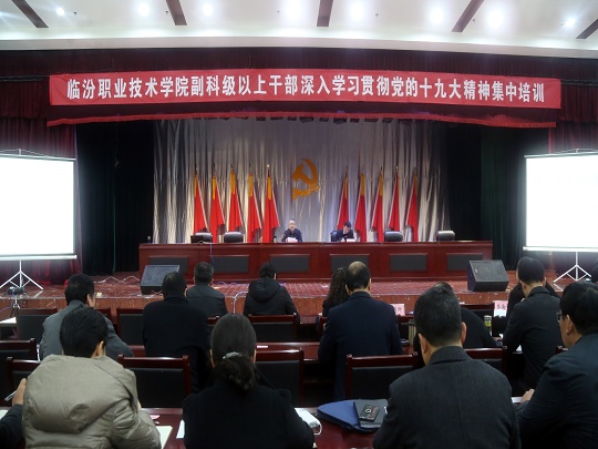 2018年11月29日、30日,我院在圖書館三樓會(huì)議室進(jìn)行了為期2天的副科級(jí)以上干部深入學(xué)習(xí)貫徹黨的十九大精神集中培訓(xùn)。學(xué)院黨委書記傅遵師,黨委副書記、院長段江燕,黨委副書記武建亭,紀(jì)委書記段效毅,黨委委員、副院長李海平、劉鳳鳴、王麗明,以及學(xué)院副科級(jí)以上干部111人參加了本次集中培訓(xùn)。黨委副書記武建亭同志主持了開班儀式。