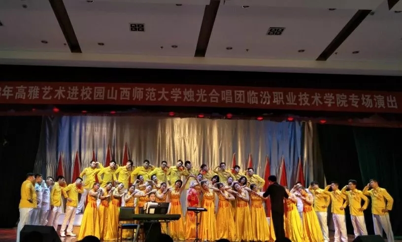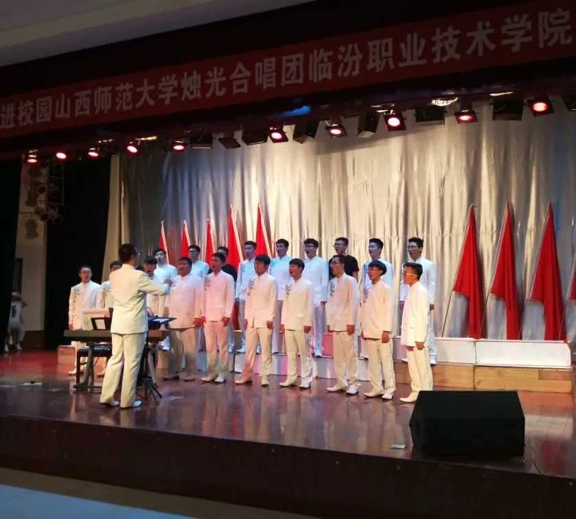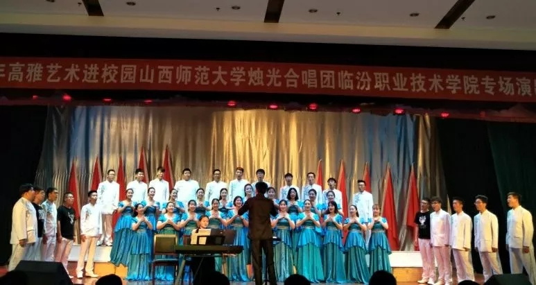 為了將高雅藝術(shù)融入校園文化建設(shè),豐富校園文化生活,達(dá)到藝術(shù)教育“潤(rùn)物無(wú)聲、育人無(wú)形”的效果,引導(dǎo)大學(xué)生弘揚(yáng)優(yōu)秀民族文化,提高藝術(shù)和文化素養(yǎng),促進(jìn)大學(xué)生全面發(fā)展。山西師范大學(xué)燭光合唱團(tuán)于6月12日下午4點(diǎn)在我院圖書(shū)樓三層舉行了一場(chǎng)精彩演出,將高雅藝術(shù)帶進(jìn)了校園。學(xué)院副院長(zhǎng)梁培福出席并致歡迎詞,各系部處室的主要領(lǐng)導(dǎo)及學(xué)生代表500余人一同觀看了此次演出。