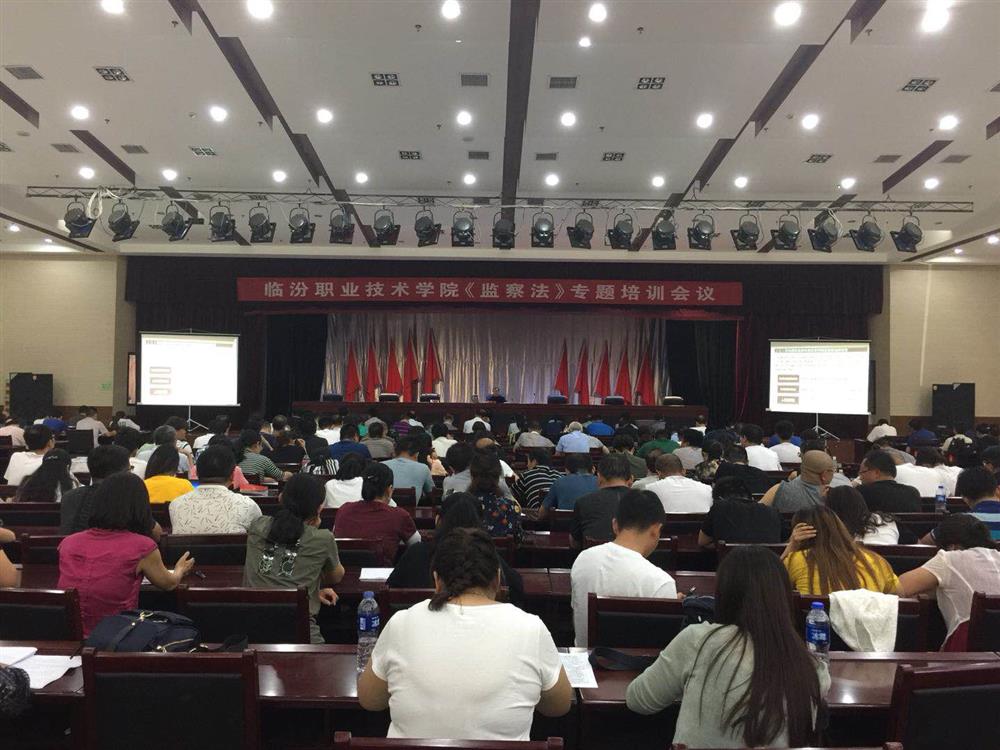 為把我院的《監(jiān)察法》學(xué)習(xí)宣傳活動(dòng)活動(dòng)抓緊抓好,按照學(xué)院《在全院組織開(kāi)展〈監(jiān)察法〉學(xué)習(xí)宣傳培訓(xùn)的實(shí)施方案》安排,2018年6月26日下午,在學(xué)院圖書(shū)樓三樓會(huì)場(chǎng)舉行了“臨汾職業(yè)技術(shù)學(xué)院《監(jiān)察法》專(zhuān)題培訓(xùn)會(huì)議”,特邀臨汾市委黨校政治建設(shè)教研室主任、副教授、黨建教學(xué)專(zhuān)家李霄前來(lái)授課。學(xué)院黨政班子、各系部處室負(fù)責(zé)同志、全體行政人員、附屬醫(yī)院班子成員和所有沒(méi)有授課任務(wù)的教師黨員300余人參加了培訓(xùn)。