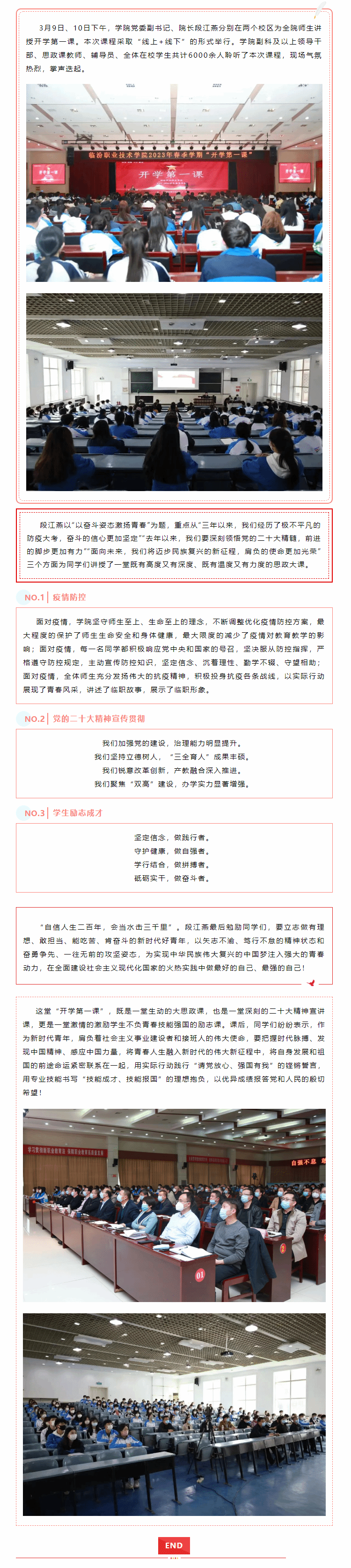 院長段江燕為師生講授“開學第一課”