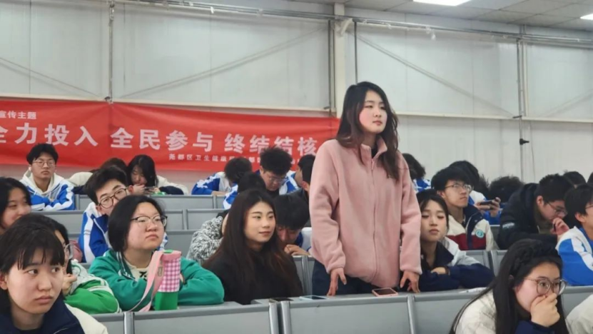 堯都區(qū)疾病預(yù)防控制中心結(jié)防科科長郭曉峰,針對結(jié)核病防治知識進(jìn)行了現(xiàn)場互動問答,內(nèi)容涵蓋結(jié)核病的病因、癥狀、預(yù)防及治療知識。通過互動形式,激發(fā)了學(xué)生學(xué)習(xí)健康知識的興趣。