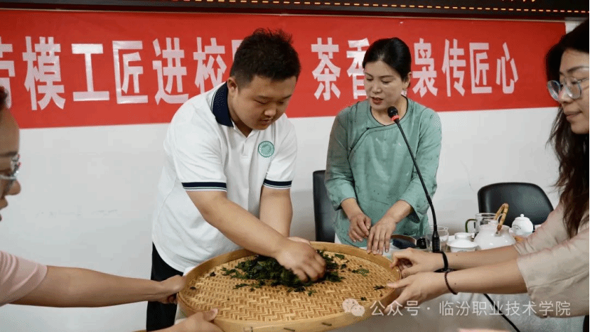 本次活動(dòng)以“連翹茶傳統(tǒng)制茶工藝”為主題,特邀山西省傳統(tǒng)工藝大師、平陽工匠提名獎(jiǎng)獲得者劉翠萍老師做專題講座,采用“線上線下”相結(jié)合的方式,讓學(xué)生了解連翹茶的歷史淵源與傳統(tǒng)工藝精髓,并通過示范指導(dǎo),讓學(xué)生們掌握連翹茶的綠茶制作工藝要點(diǎn),讓學(xué)生沉浸式體驗(yàn)茶文化的魅力,感受制茶的樂趣。