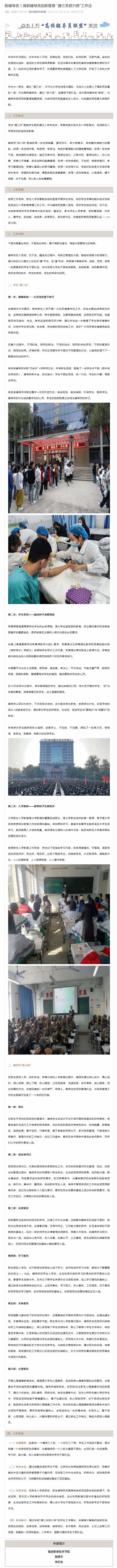 2022年10月28日,微信客戶端“高校輔導(dǎo)員聯(lián)盟”以《高職輔導(dǎo)員迎新管理“通三關(guān)獲六將”工作法》為題,報道我院輔導(dǎo)員迎新管理工作模式