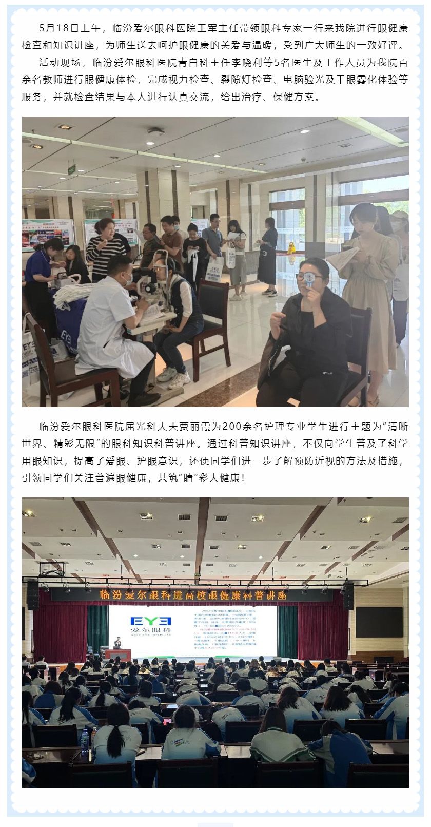 職教活動(dòng)周 | 臨汾愛爾進(jìn)校園 服務(wù)師生眼健康