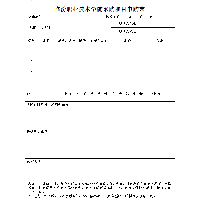 附件:1.《臨汾職業(yè)技術(shù)學(xué)院采購項目申購表》