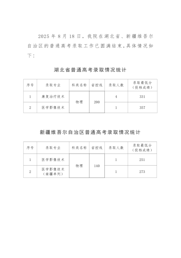 臨汾職業(yè)技術(shù)學(xué)院2025年普通高考招生錄取工作簡報(湖北省、新疆維吾爾自治區(qū))