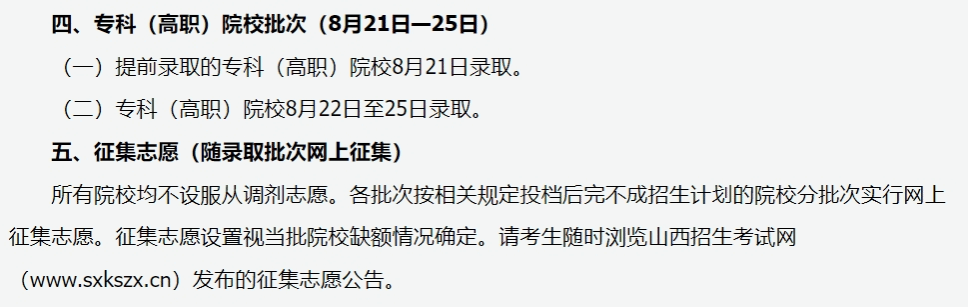 山西省2024年普通高校招生錄取時間安排