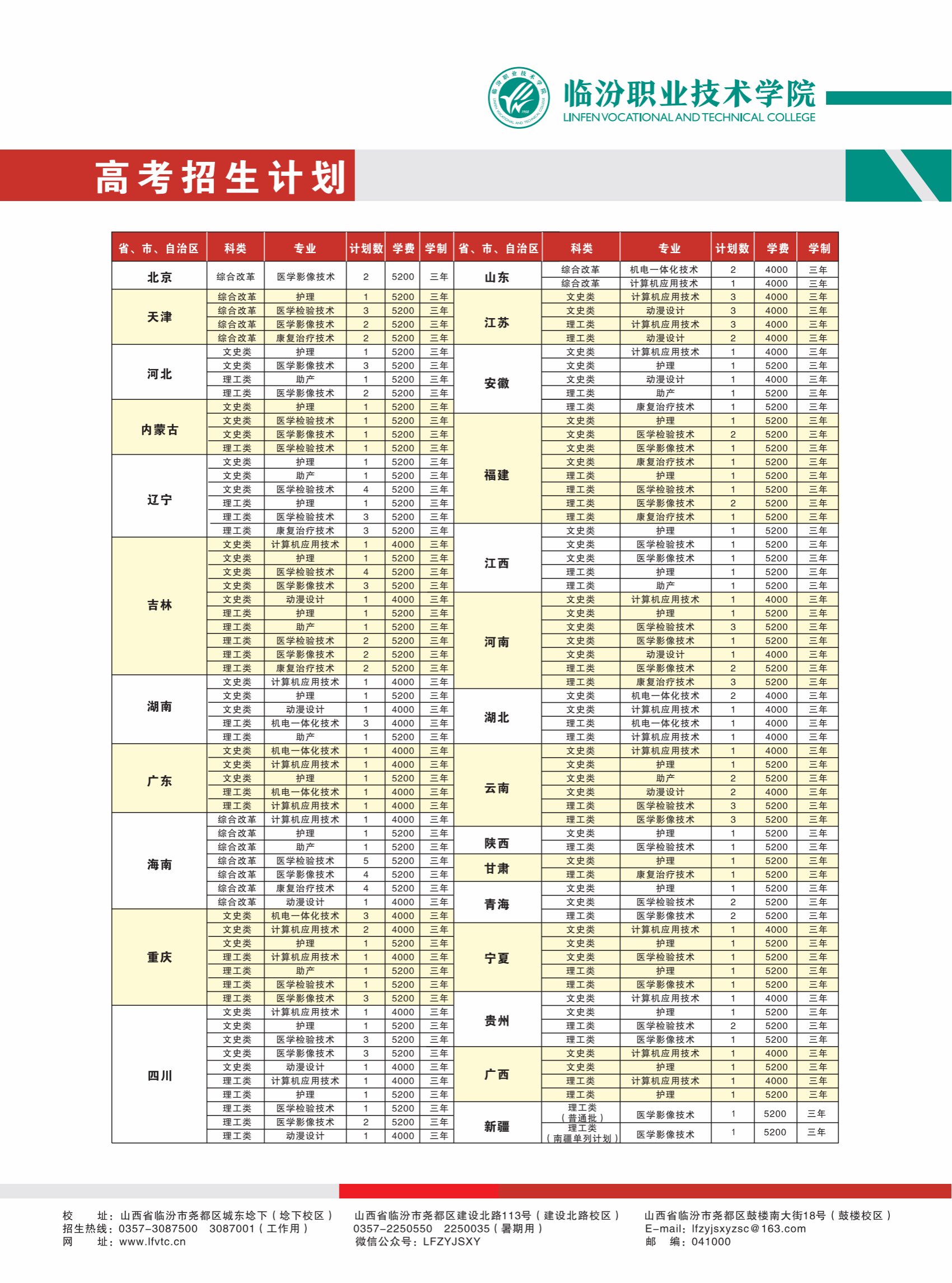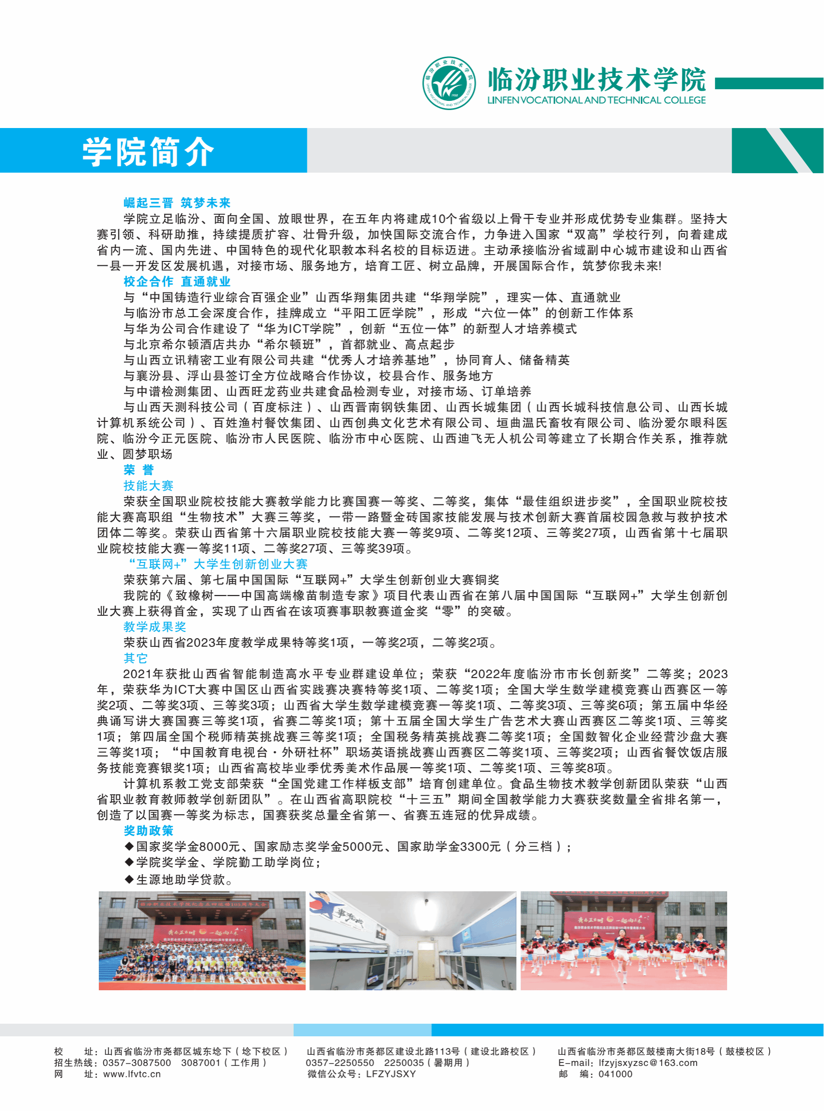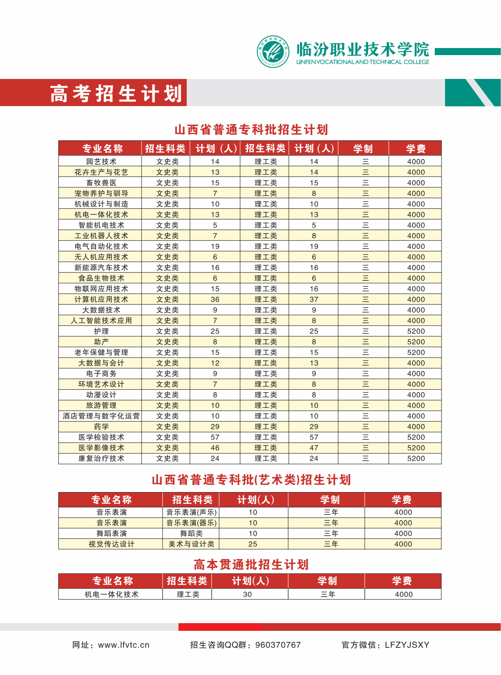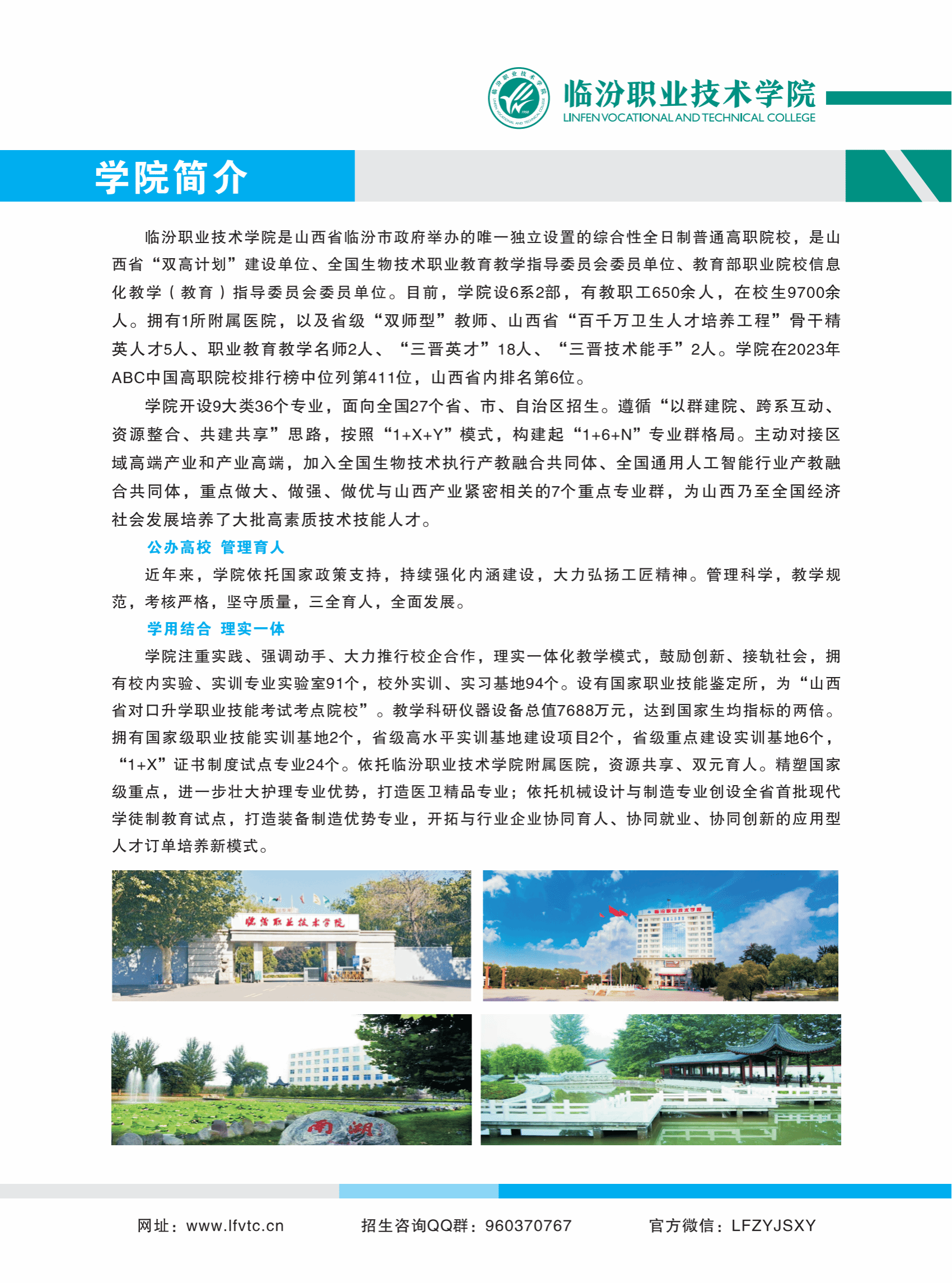 臨汾職業(yè)技術學院2024年普通高考招生簡章