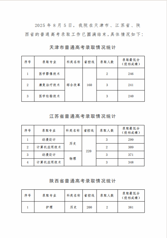 臨汾職業(yè)技術(shù)學(xué)院2025年普通高考招生錄取工作簡(jiǎn)報(bào)(天津市、江蘇省、陜西省)