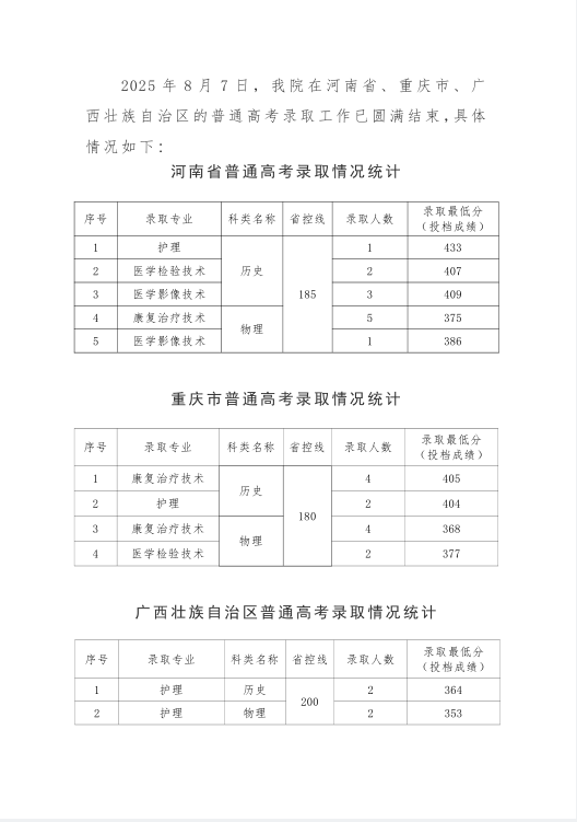 臨汾職業(yè)技術(shù)學(xué)院2025年普通高考招生錄取工作簡報(河南省、重慶市、廣西壯族自治區(qū))