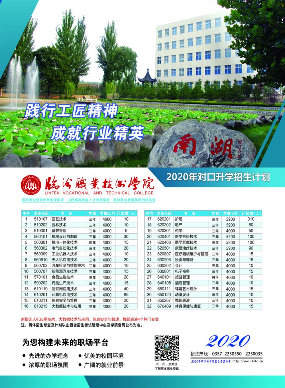 2020年臨汾職業(yè)技術(shù)學(xué)院對口升學(xué)招生計(jì)劃
